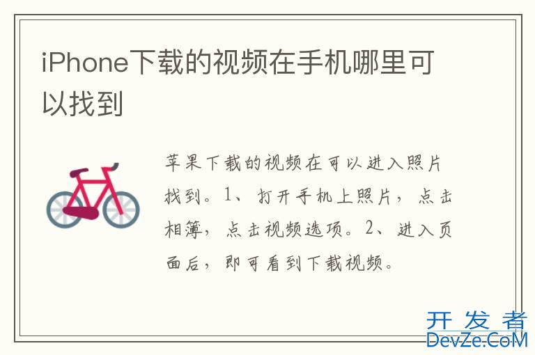 品牌型号:iPhone13 pro 系统:IOS15.4.1以iPhone13 pro为例,iPhone下载的视频在可以进入照片找到。分为2步,具体步骤如下:1进入照片相簿视频开发者_开发百科
