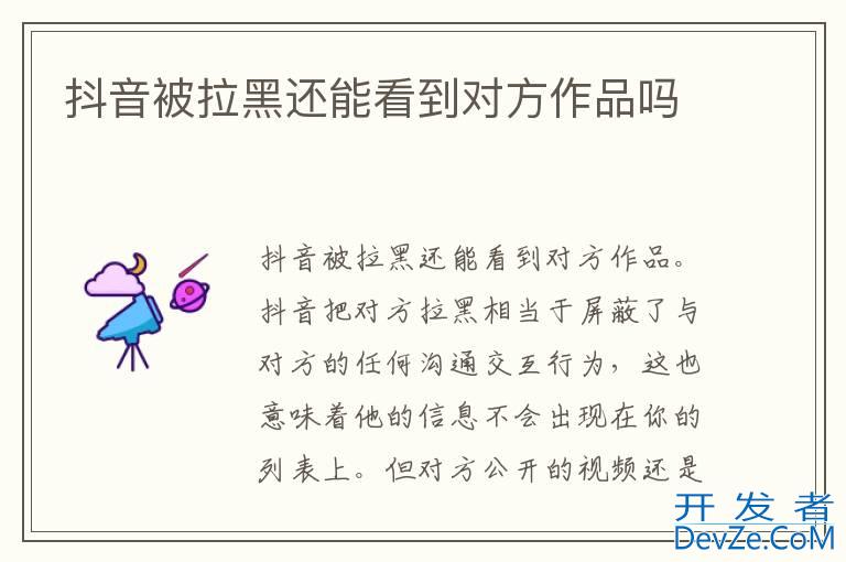 品牌型号:华为 P50 Pocket 系统:HarmonyOS 3 软件版本:抖音21.5.0抖音被拉黑还是能看到对方作品的。抖音把对方拉黑相当于屏蔽了与对方的任何沟通交互行为,这也意味着他的信息不会