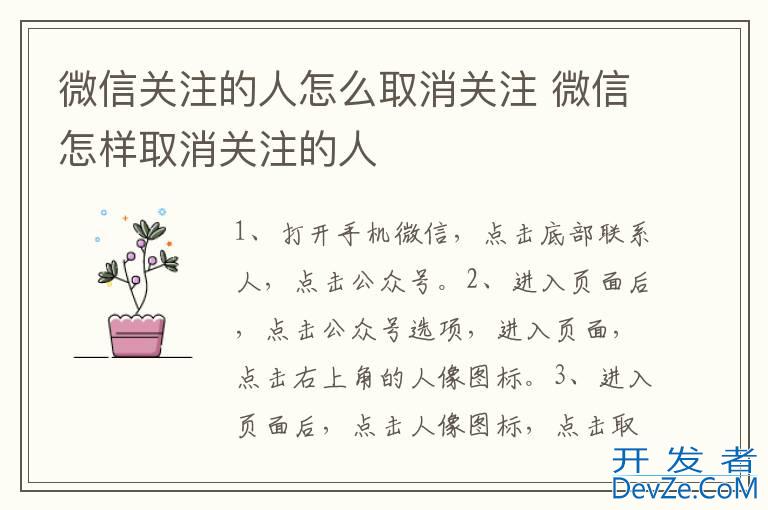 品牌型号:iPhone13 pro 系统:IOS15.4 软件版本:微信8.0.18以微信8.0.18为例,微信关注的人可以进入公众号进行取消关注。分为3步,具体步骤如下:1进入微信公众号打开手机微信