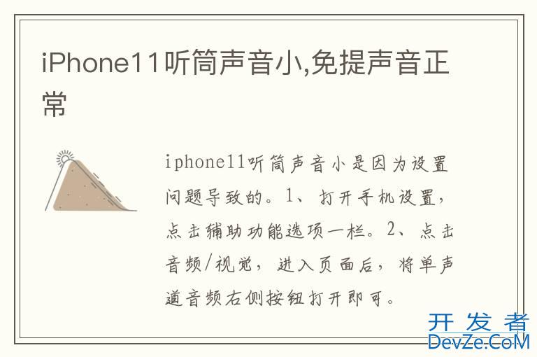 品牌型号:iPhone11 pro 系统:IOS15.4以iPhone11 pro为例,iPhone11听筒声音小是因为设置问题导致的。分为2步,具体步骤如下:1进入设置辅助功能打开手机设置,点击辅助