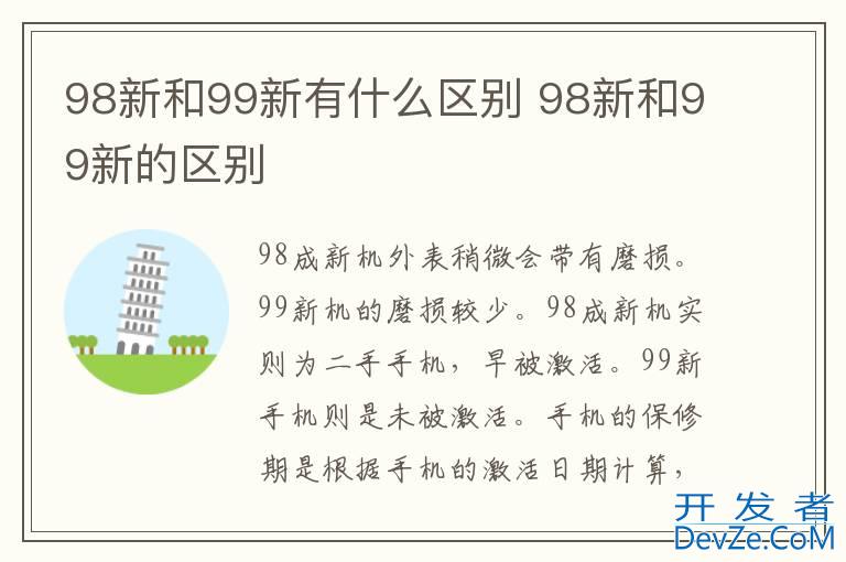 品牌型号:HUAWEI P50 Pocket 系统:HarmonyOS 3开发者_StackOverflow社区 1、外观不同。98成新机,就表示外表稍微会带有磨损。99新机的磨损较少,甚