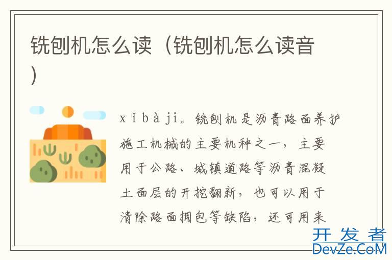 品牌型号:lenovo ThinkPad X250 系统:Windows 11开发者_运维问答 铣刨机的读音为xǐbàji。铣刨机是沥青路面养护施工机械的主要机种之一,沥青混凝土路面养护施工的主