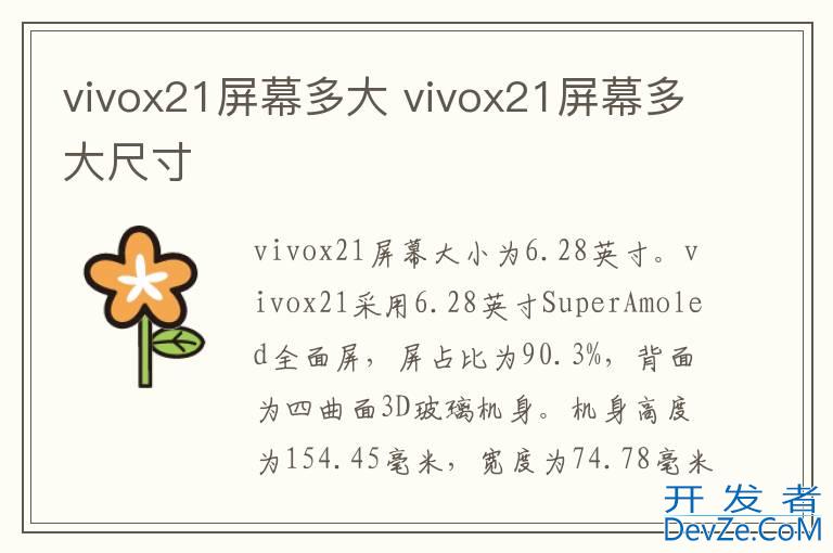 品牌型号:vivox21 系统:Funtouch OS 4.0vivox21屏幕大小为6.28英寸。vivox21采用6.28英寸SuperAmoled全面屏,屏占比为90.3%,背面为四曲面3D玻璃