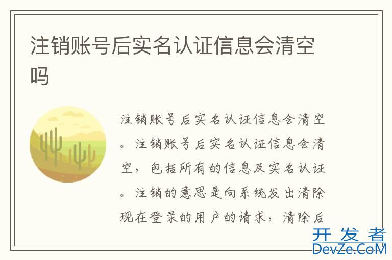 品牌型号:iPhone13 pro pro 系统:iOS 15.6.1注销账号后实名认证信息会清空。注销账号后实名认证信息会清空,包括所有的信息及实名认证。注销的意思是向系统发出清除现在登录的用户的请