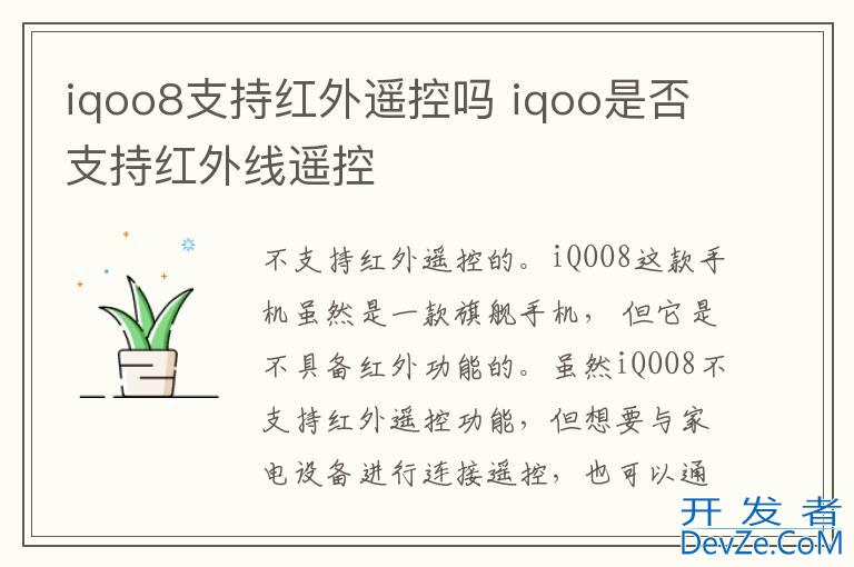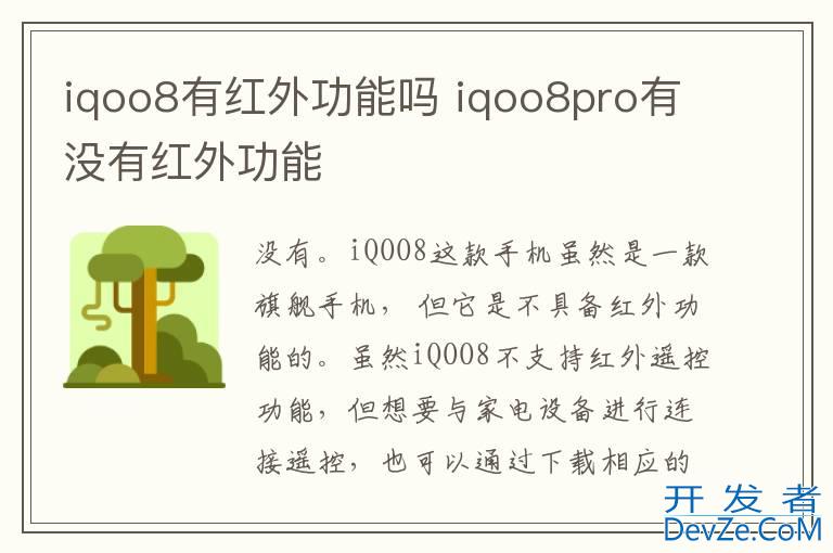 品牌型号:iQOO 8 系统:OriginOS 1.0iqoo8是没有红外功能的。iQOO8这款手机虽然是一款旗舰手机, 但它是不具备红外功能的。红外线功能并不会经常使用,只有恰好某个遥控器找不到的话