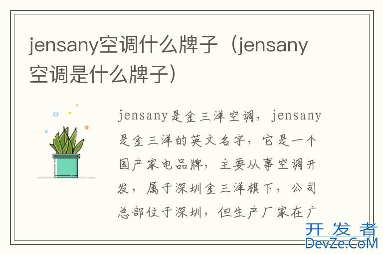 品牌型号:金三洋空调 系统:kf-36g 开发者_开发百科 jensany是金三洋空调,jensany是金三洋的英文名字,它是一个国产家电品牌,主要从事空调开发,属于深圳金三洋旗下,公司总部位于深圳,