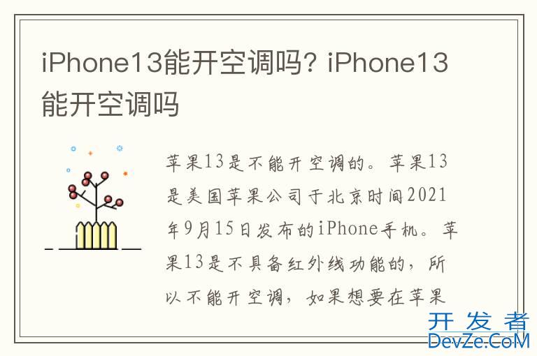 品牌型号:iPhone13 pro 系统:iOS 16.0iPhone13是不能开空调的。iPhone13是美国iPhone公司于北京时间2021年9月15日发布的iPhone手机。iPhone13是