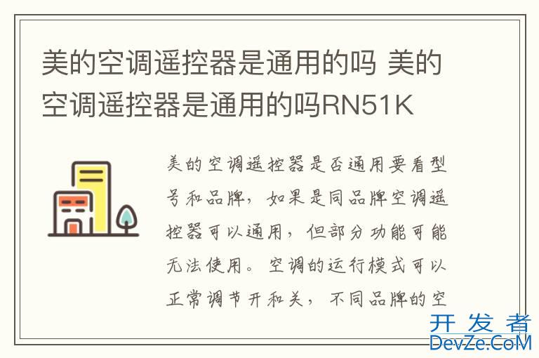 品牌型号:美的空调 系统:KFR开发者_开发技巧-26GW美的空调遥控器是否通用要看型号和品牌,如果是同品牌空调遥控器可以通用,但部分功能可能无法使用。空调的运行模式可以正常调节开和关,不同品牌的空调