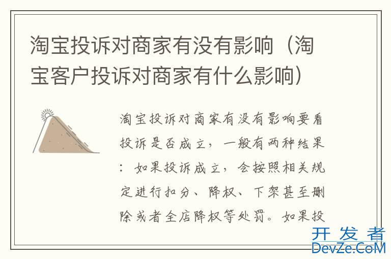 品牌型号:iPhone13 pro pro 系统:iOS 15.6.1 软件版本:淘宝10.15.0淘宝投诉对商家有没有影响要看投诉是否成立,一般有两种结果:1、淘宝规定,买家对卖家发起投诉后,进入举