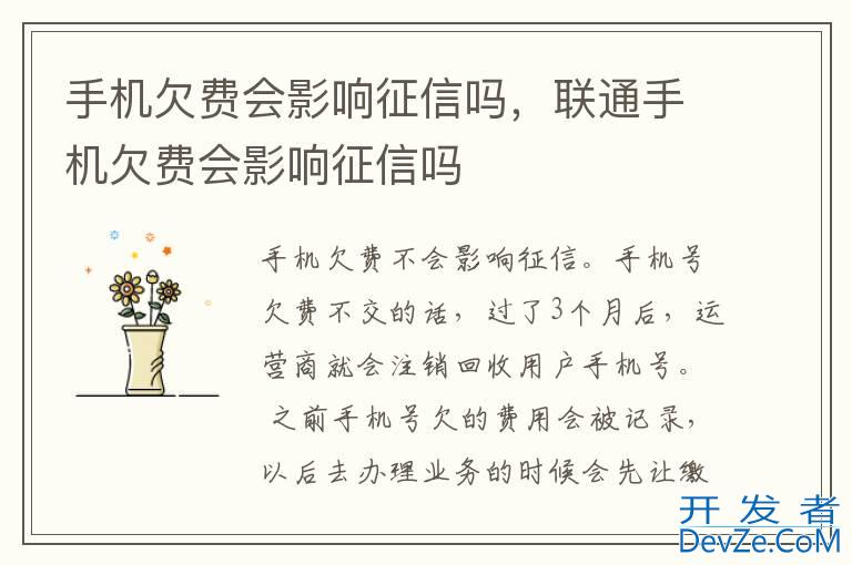 品牌型号:iPhone13 pro pro 系统:iOS 16.0开发者_Python百科 手机欠费不会影响征信。手机号欠费不交的话,过了3个月后,运营商就会注销回收用户手机号。
