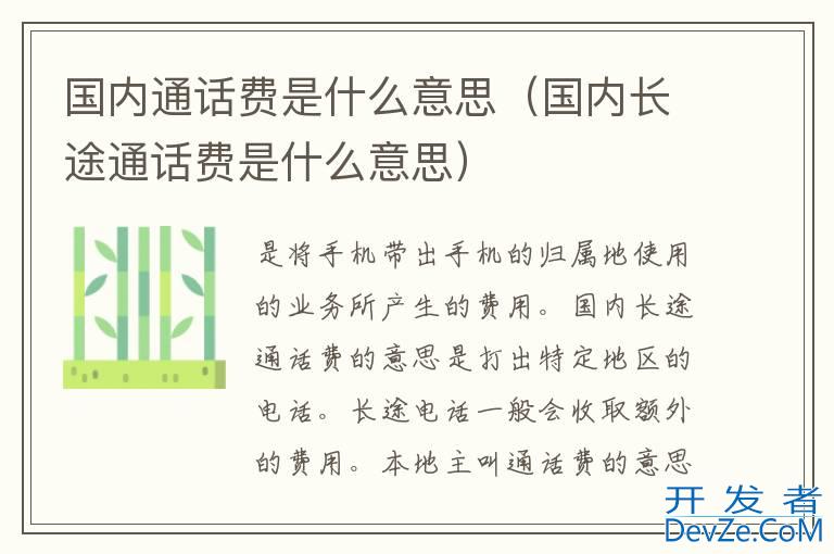 品牌型号:HUAWEI P50 Pocket 系统:HarmonyOS 3国内通话费的意思是将手机带出手机的归属地使用的业务所产生的费用。国内长途通话费的意思是打出特定地区的电话,通常有不同于本地电话