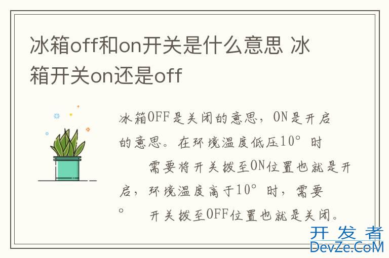 品牌型号:松下冰箱 系统:NR-JB57WPA-W冰箱OFF是关闭的意思,ON是开启的意思。在环境温度低压10°时,需要将开关拨至ON位置也就是开启,环境温度高于10°时,需要将开关拨至OFF位置也就