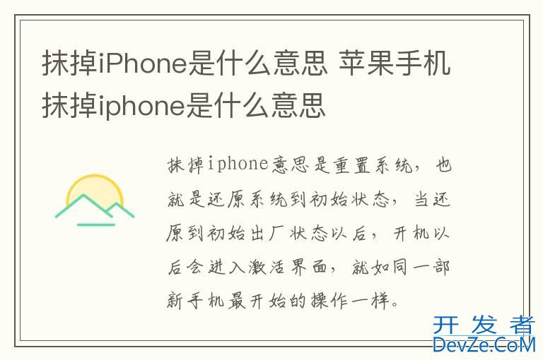 品牌型号:iPhone13 pro pro 系统:IOS15.4抹掉iPhone意思是重置系统,也就是还原系统到初始状态,当还原到初始出厂状态以后,开机以后会进入激活界面,就如同一部新手机最开始的操作