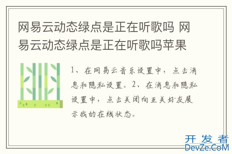 开发者_如何转开发 品牌型号:华为p40 系统:HarmonyOS 2.0.0 软件版本:网易云音乐 8.7.11网易云动态绿点不是正在听歌,网易云动态绿点表示对方在线,可以关闭在线状态。以华为p