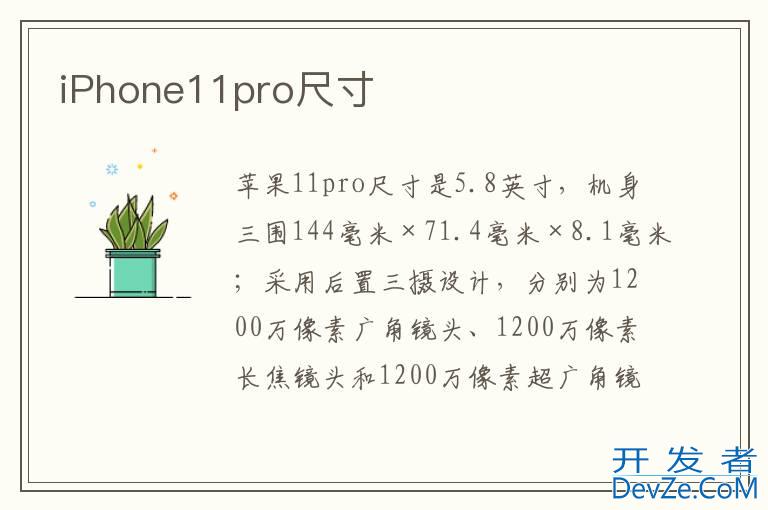 品牌型号:iPhone11pro 系统:iOS 16.0iPhone11pro尺寸是5.8英寸,机身三围144毫米×71.4毫米×8.1毫米;采用后置三摄设计,分别为1200万像素广角镜头、1200万