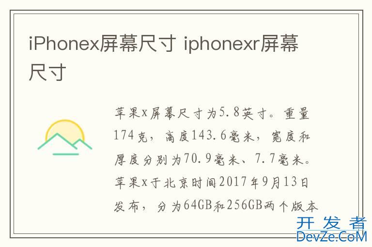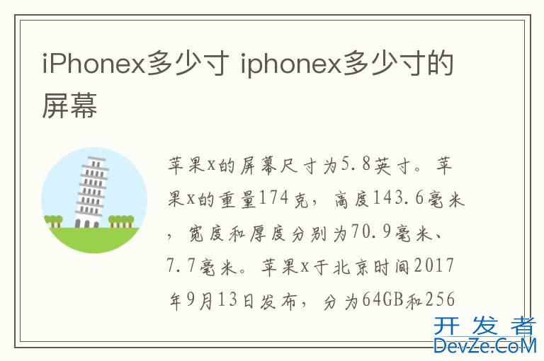 品牌型号:iPhonex 系统:IOS15.4iPhonex的屏幕尺寸为5.8英寸。iPhonex的重量174克,高度143.6毫米,宽度和厚度分别为70.9毫米、7.7毫米,2436*1125像素分