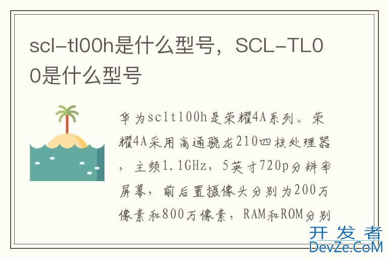品牌型号:华为荣耀4A 系统:scltl00h华为scltl00开发者_JAVA技巧h是荣耀4A系列。荣耀4A采用高通骁龙210四核处理器,主频1.1GHz,5英寸720p分辨率屏幕,前后置摄像头分别