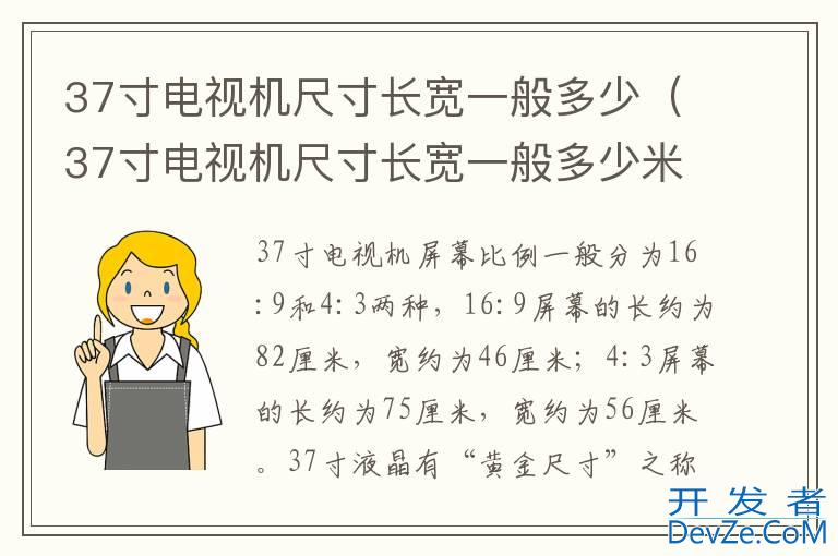 品牌型号:海信电视 系统:75E3F37寸电视机屏幕比例一般分为16:9和4:3两种,16:9屏幕的长约为82厘米,宽约为46厘米;4:3屏幕的长约为75厘米,宽约为56厘米。37寸液晶有“黄金尺寸”