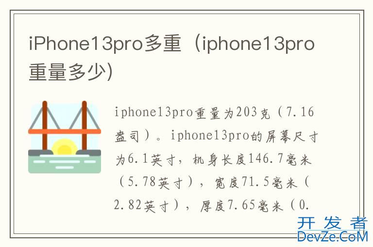 品牌型号:iPhone13 pro pro 系统:iOS 16.0iPhone13pro重量为203克(7.16盎司)。iPhone13pro的屏幕尺寸为6.1英寸,开发者_JAVA百科机身长度146
