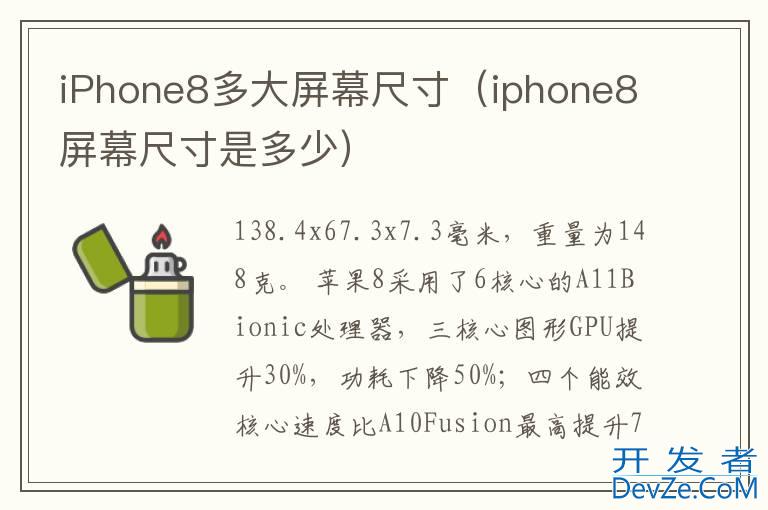 品牌型号:iPhone8 系统:IOS11iPhone8的屏幕尺寸为138.4x67.3x7.3毫米,重量为148克。 iPhone8采用了6核心的A11Bionic处理器,比A10强25%,三核心图