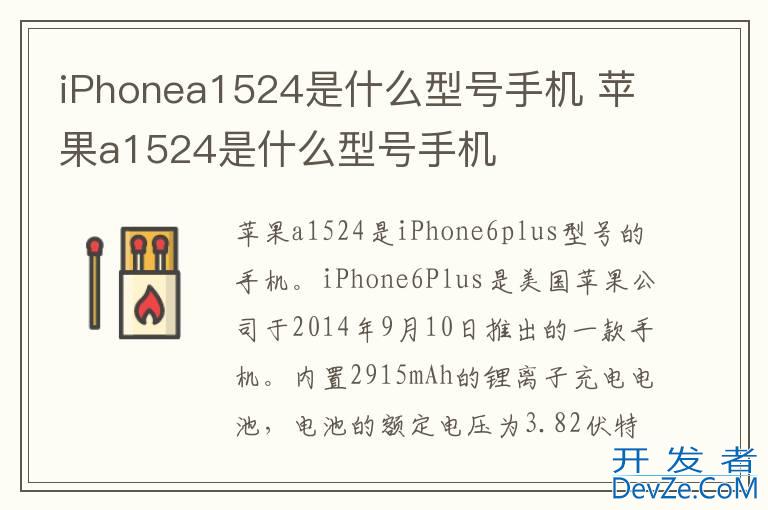 品牌型号:iPhone 6 Plus 系统:iOS 16.0开发者_运维知识库 iPhonea1524是iPhone6plus型号的手机。iPhone6Plus是美国iPhon