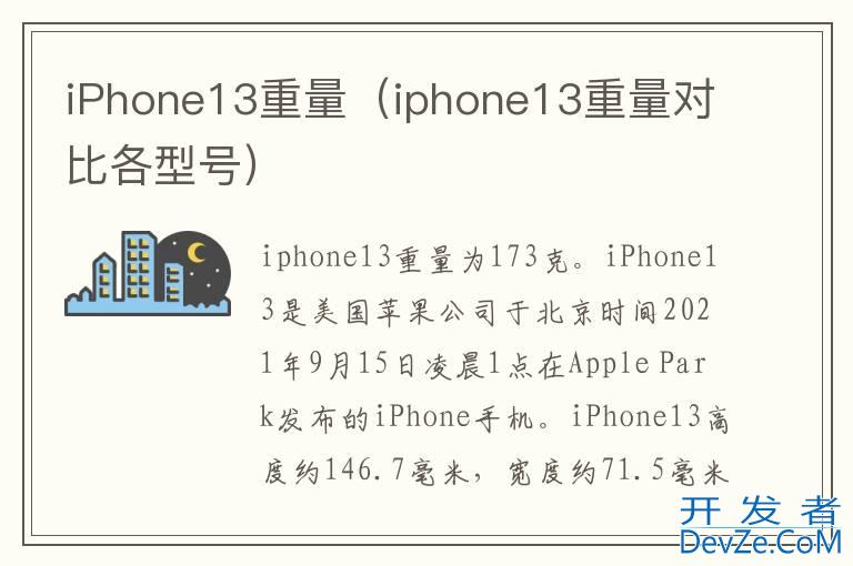品牌型号:iPhone13 系统:iOS 16.0iPhone13重量为173克。iPhone13 pro是开发者_如何学JAVA美国iPhone公司于北京时间2021年9月15日凌晨1点在Apple