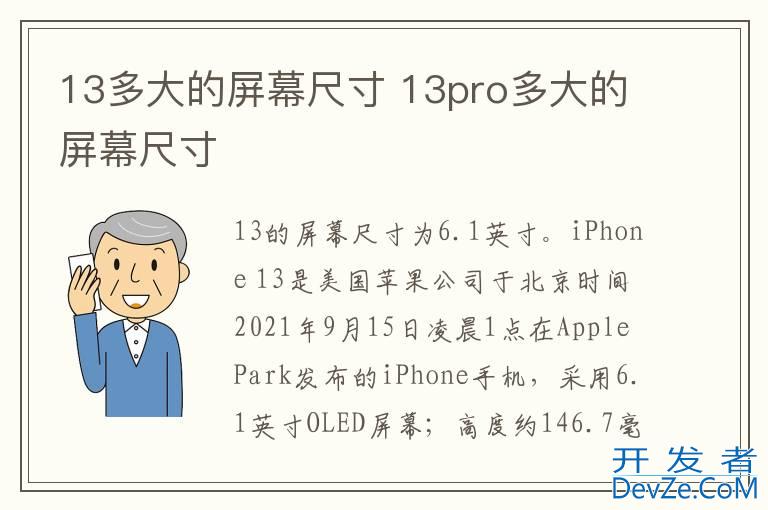 品牌型号:iPhone13 pro 系统:IOS15.413的屏幕尺寸为6.1英寸。iPhone13 pro是美国iPhone公司于北京时间2021年9月15日凌晨1点在Apple Park发布的iP