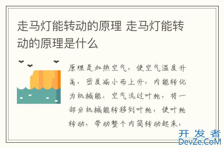 品牌型号:梦多福走马灯 系统:JF2401-486走马灯转动的开发者_开发问答原理是加热空气,使空气温度升高,密度减小而上升,内能转化为机械能。空气流过叶轮,将一部分机械能转移到叶轮,使叶轮转动,带动