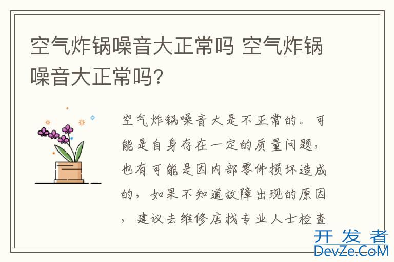 品牌型号:九阳空气炸锅 系统:KL45-VF5开发者_开发百科30空气炸锅噪音大是不正常的。可能是自身存在一定的质量问题,也有可能是因内部零件损坏造成的,如果不知道故障出现的原因,建议去维修店找专业人