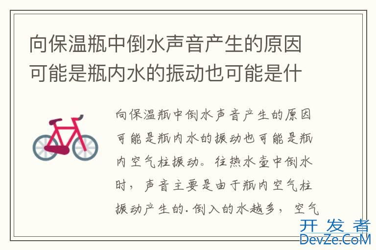 品牌型号:炊大皇保温瓶 系统:WG40619向保温瓶中倒水声音产生的原因可能是瓶内水的振动也可能是瓶内空气柱振动。往热水壶中倒水时,声音主要是由于瓶内空气柱振动产生的.倒入的水越多,空气柱越短,这时它
