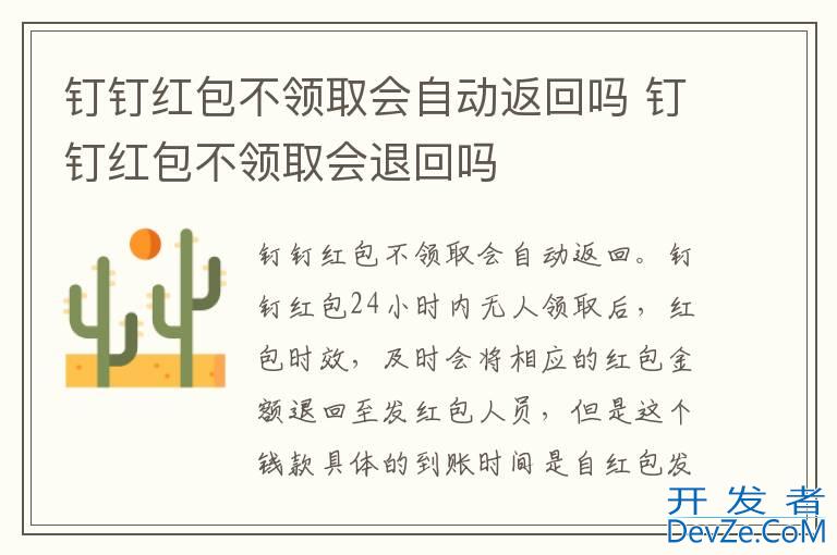 品牌型号:iPhone13 pro pro 系统:IOS15.4 软件版本:钉钉6.5.5钉钉红包不领取会自动返回。钉钉红包24小时内无人领取后,红包时效,及时会将相应的红包金额退回至发红包人员,但是
