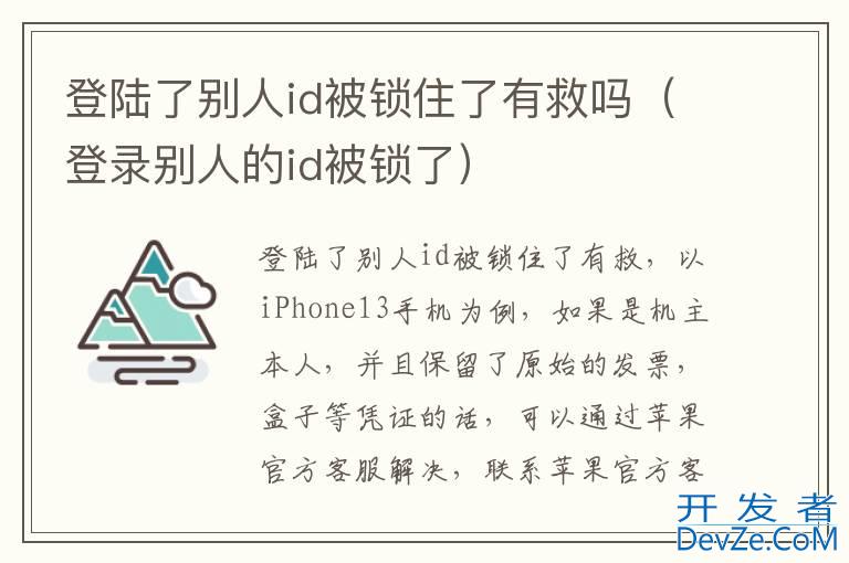 品牌型号:iPhone13 pro 系统:IOS15.4登陆了别人id被锁住了有救,以iPhone13 pro手机为例,如果是机主本人,并且保留了原始的发票,盒子等凭证的话,可以通过iPhone官方客