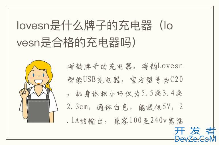 品牌型号:海韵充电器 系统:A开发者_高级运维C1lovesn是海韵牌子的充电器。海韵Lovesn智能USB充电器,官方型号为C20,机身体积小巧仅为5.5乘3.4乘2.3cm,通体白色,能提供5V,