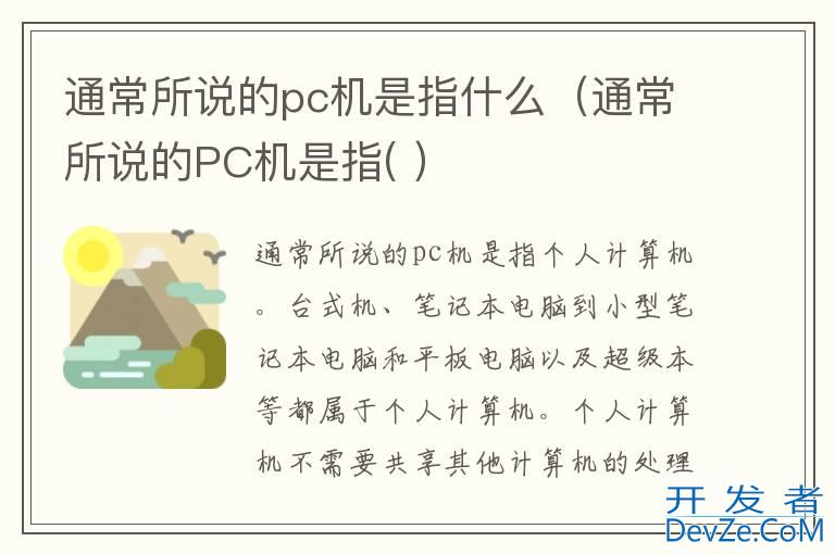 通常所说的pc机是指个人开发者_开发问答计算机。台式机、笔记本电脑到小型笔记本电脑和平板电脑以及超级本等都属于个人计算机。个人计算机不需要共享其他计算机的处理、磁盘和打印机等资源也可以独立工作。从台式