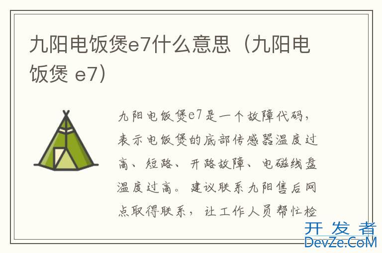 品牌型号:九阳电饭煲 系统:F-40TD02九阳电饭煲e7是一个故障代码,表示电饭煲的底部传感器温度过高、短路、开路故障、电磁线盘温度过高。建议联系九阳售后网点取得联系,让工作人员帮忙检查一下机器,看