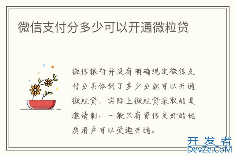 品牌型号:华为P50 系统:HarmonyOS3 软件版本:微信8.0.22微众银行并没有明确规定微信支付分具体到了多少分就可以开通微粒贷。实际上微粒贷采取的是邀请制,一般只有资信良好的优质用户可以受