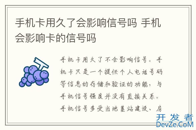 品牌型号:iPhone13 pro pro 系统:IOS15.4手机卡用久了不会影响信号。手机卡只是一个提供个人电话号码等信息的存储和验证的功能,与手机信号强度并没有直接关系。手机信号多受当地基站建设
