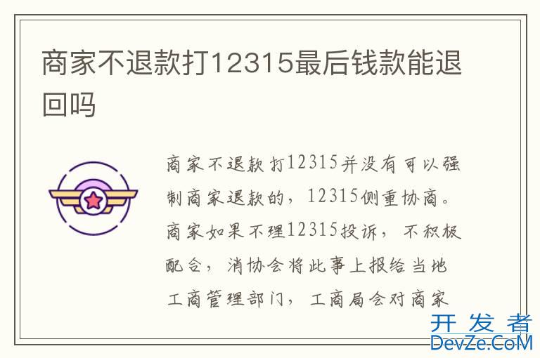 品牌型号:iPhone13 pro pro 系统:IOS15.5开发者_如何转开发 商家不退款打12315并没有可以强制商家退款的,强制商家赔偿相关权力