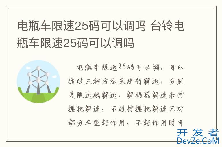 品牌型号:九号电动车N70C 系统:JH800DQT-2开发者_运维知识库 电瓶车限速25码可以调。可以通过三种方法来进行解速,分别是限速线解速、解码器解速和“拧握把”解速,不过“