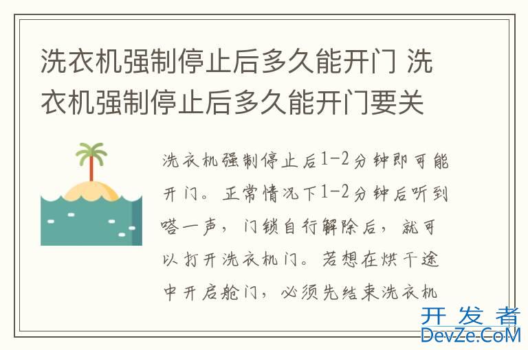 品牌型号:米家洗衣机 系统:XHQG150XM21洗衣机强制停止后1-2分钟即可能开门。正常情况下1-2分钟后听到”嗒“一声,门锁自行解除后,就可以打开洗衣机门。若想在烘干途中开启舱门,必须先结束洗衣