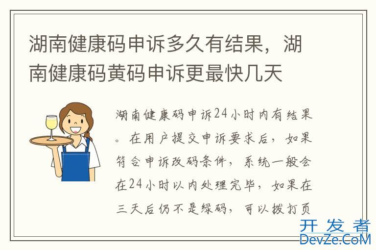 品牌型号:华为p50 系统:HarmonyOS 3 软件版本:微信8.0.22湖南健康码申诉24小时内有结果。在用户提交申诉要求后,如果符合申诉改码条件,系统一般会在24小时以内处理完毕,如果在三天后