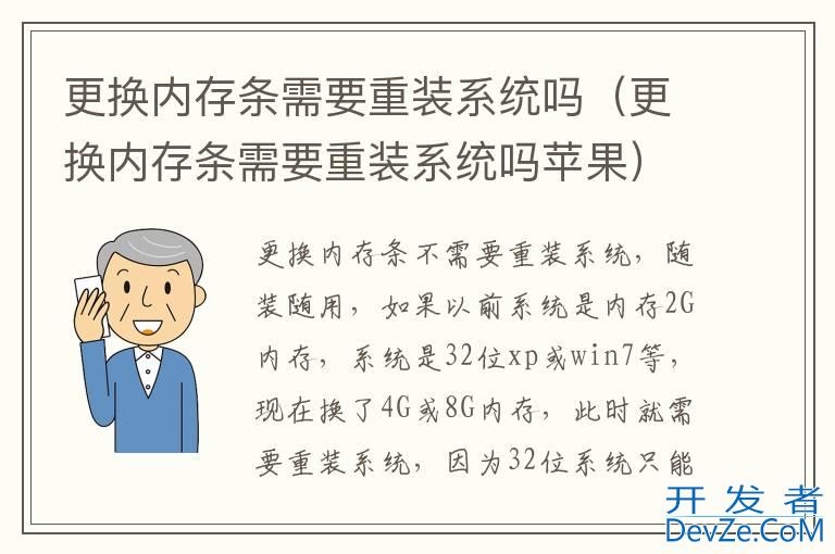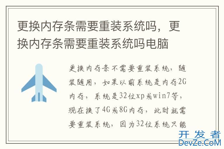 更换内存条不需要重装系统,随装随用,如果以前系统是内存2G内存,系统是32位xp或win7等,现在换了4G或8G内存,此时就需要重装系统,因为32位系统只能识别3.25G左右的内存,超过4G就浪费了,