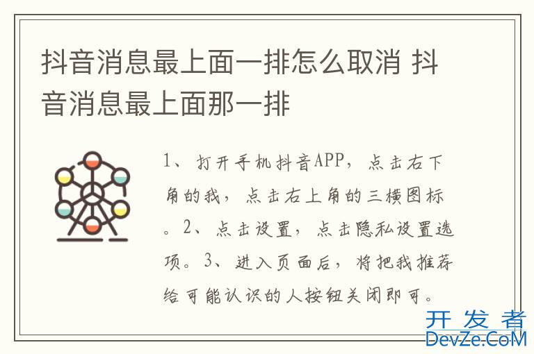 品牌型号:iPhone13 pro 系统:IOS15.4 软件版本:抖音19.9.0以抖音19.9.0为例,抖音消息最上面一排可以进入隐私关闭将把我推荐给可能认识的人。分为3步,具体步骤如下:开发者_