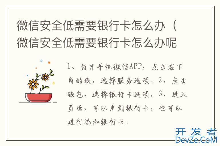 品牌型号:Vivo Y73 系统:Funtouch OS_10.5 软件版本:微信8.0.19以微信8.0.19为例,微信安全低需要银行卡进入钱包进行添加银行卡。分为3步,具体步骤如下:1进入微信服务