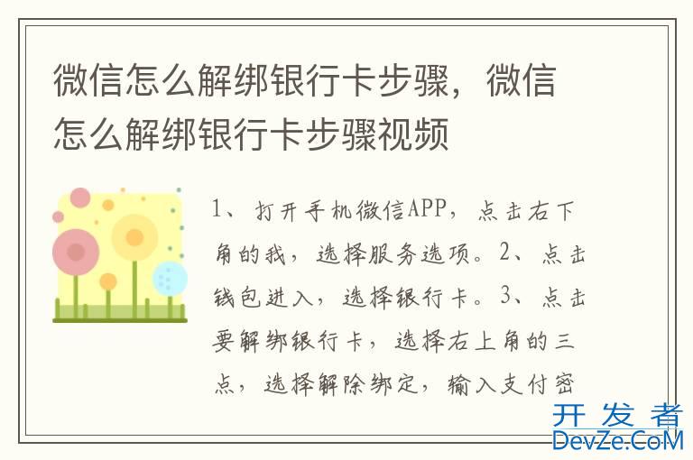 品牌型号:iPhone13 pro 系统:IOS15.4.1 软件版本:微信8.0.20以微信8.0.20为例,微信解绑银行卡步骤进入服务界面进行解绑。分为3步,具体步骤如下:1进入微信我的服务打开手