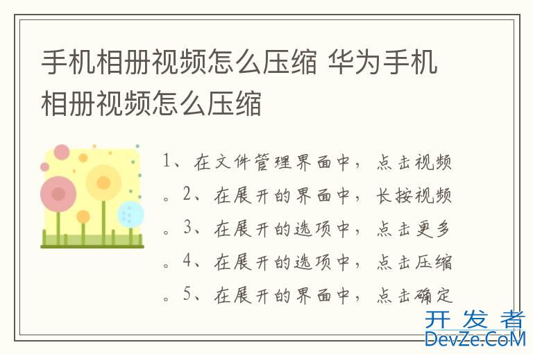 品牌型号:华为p50 系统:HarmonyOS 2.0.0压缩手机相册视频需要在手机文件管理中,选择视频进行压缩即可。以手机华为p50为例,压缩手机相册视频的步骤分为5步,具体操作如下:1点击视频在文