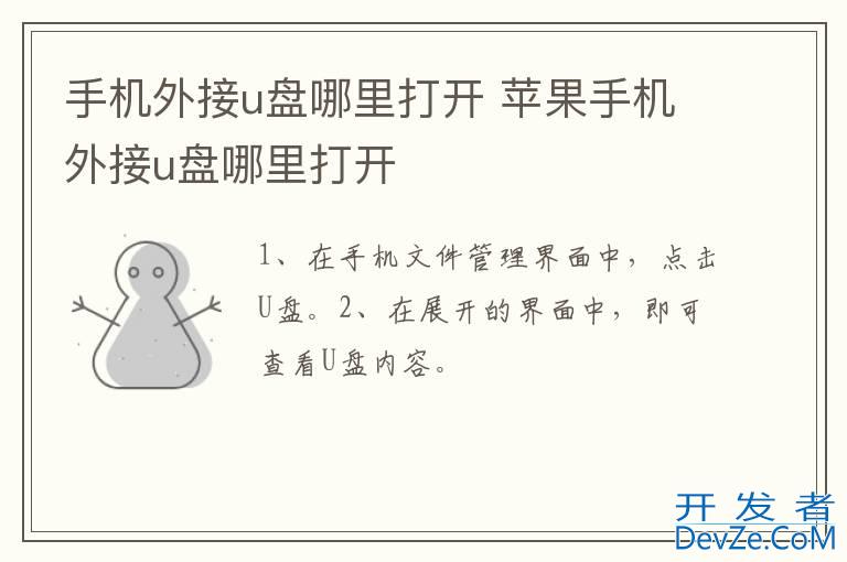 品牌型号:华为p50 系统:HarmonyOS 2.0.0打开手机外接u盘需要在手机文件管理中进行开启即可。以手机华为p50为例,打开手机外接u盘的步骤分为2步,具体操作如下:1点击U盘在手机文件管理