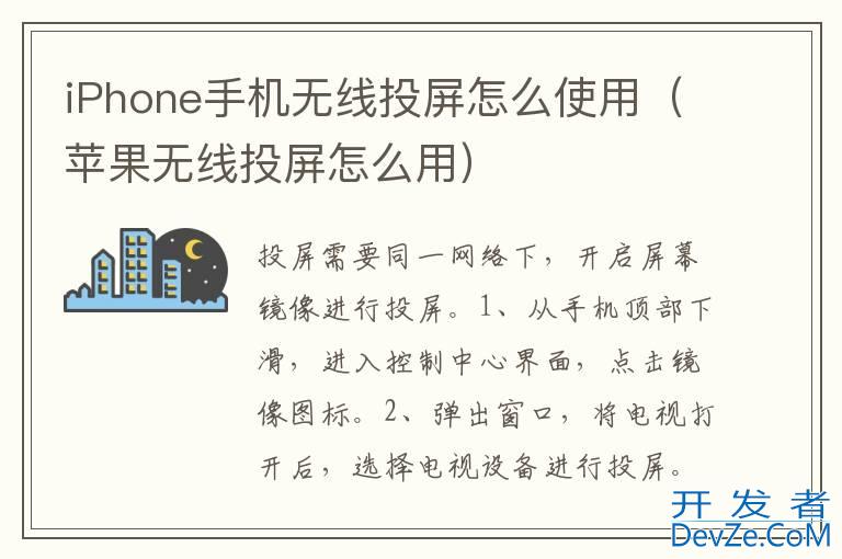 品牌型号:iPhone13 pro 系统:IOS15.4以iPhone13 pro为例,投屏需要同一网络下,开启屏幕镜像进行投屏。分为2步,具体步骤如下:1进入控制中心镜像从手机顶部下滑,进入控制中心