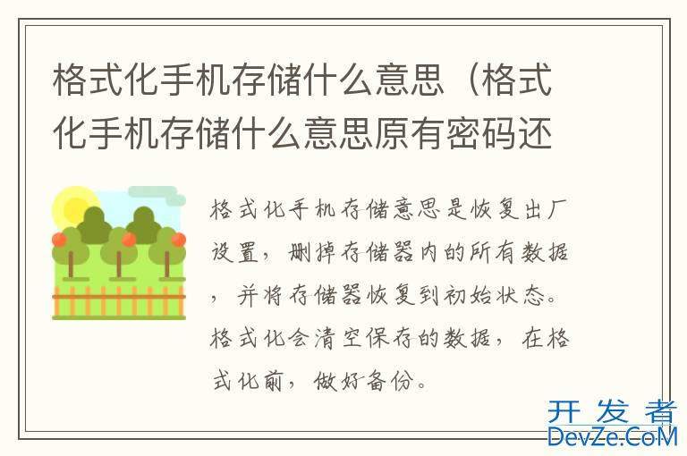 品牌型号:iPhone13 pro 系统:IOS15.4格式化手机存储意思是恢复出厂设置,删掉存储器内的所有数据,并将存储器恢复到初始状态。格式化会清空保存的数据,在格式化前,做好备份。格式化手机的方