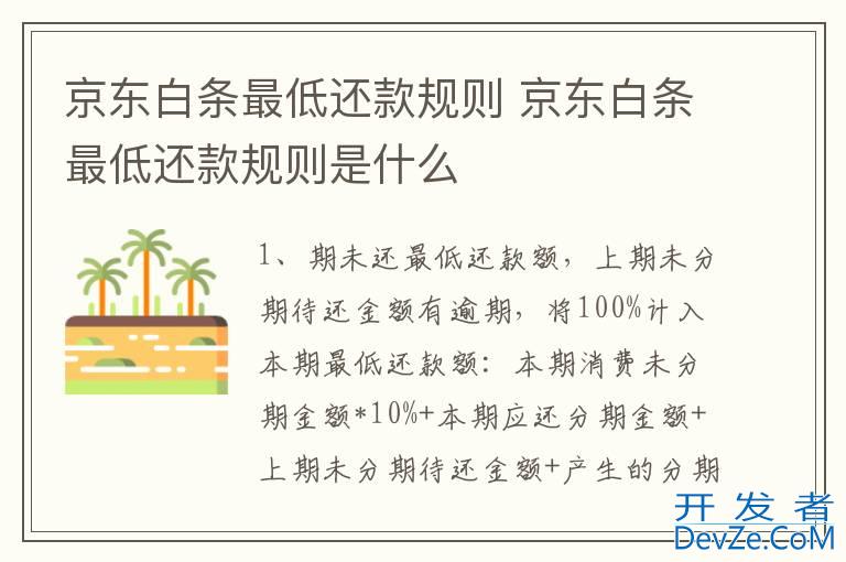 品牌型号:iPhone13 p开发者_开发问答ro pro 系统:iOS 15.6.1 软件版本:京东11.2.0京东白条最低还款规则分为两种情况:1、期未还最低还款额,上期未分期待还金额有逾期,将1